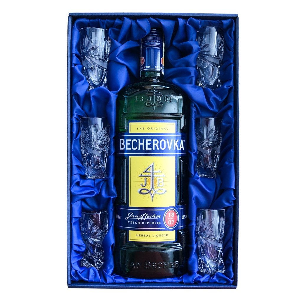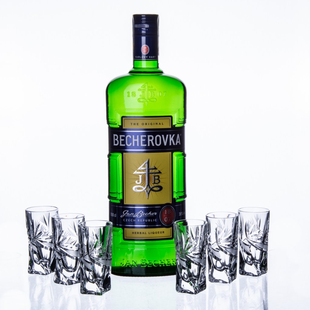 Becherovka 1,0l a 6ks skleniček 50ml, Mašle