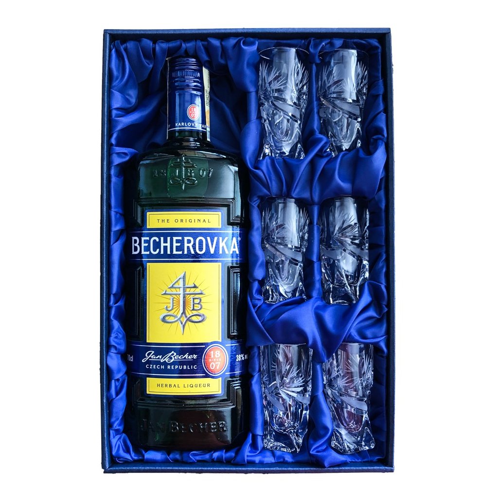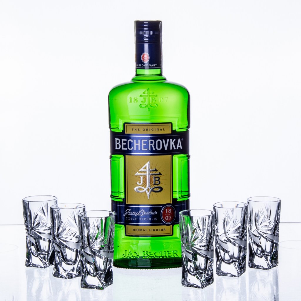Becherovka 0,7l a 6ks skleniček 50ml, Mašle