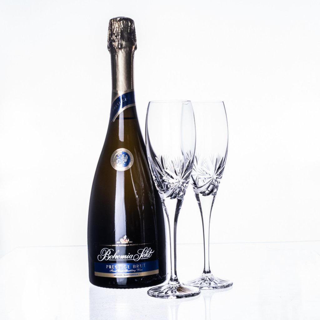 Bohemia Sekt Prestige Brut se 2 skleničkami 150ml, Mašle