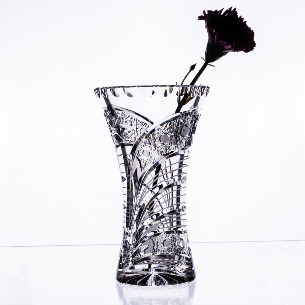 Tato ručně broušená váza z českého křišťálu potěší každou ženu. Váza je dostupná i ve větších velikostech a jiných dekorech. Sklo, ze kterého je váza vyrobena obsahuje min. 24%PbO (oxidu olovnatého). Jedná se o tradiční český kříšťál - olovnaté sklo, která obohacuje sklo o lesk a pevnost.