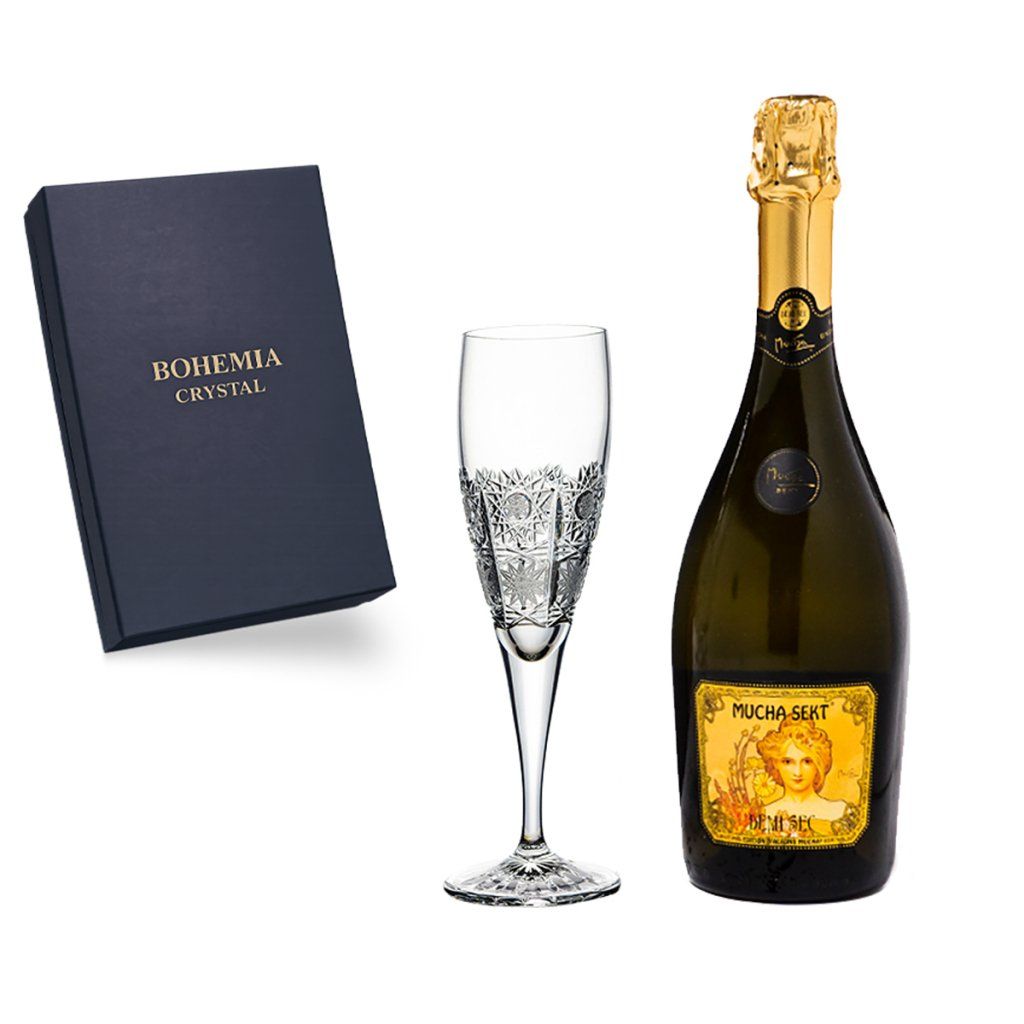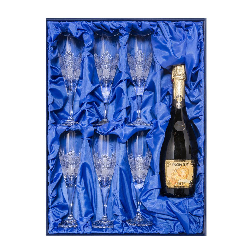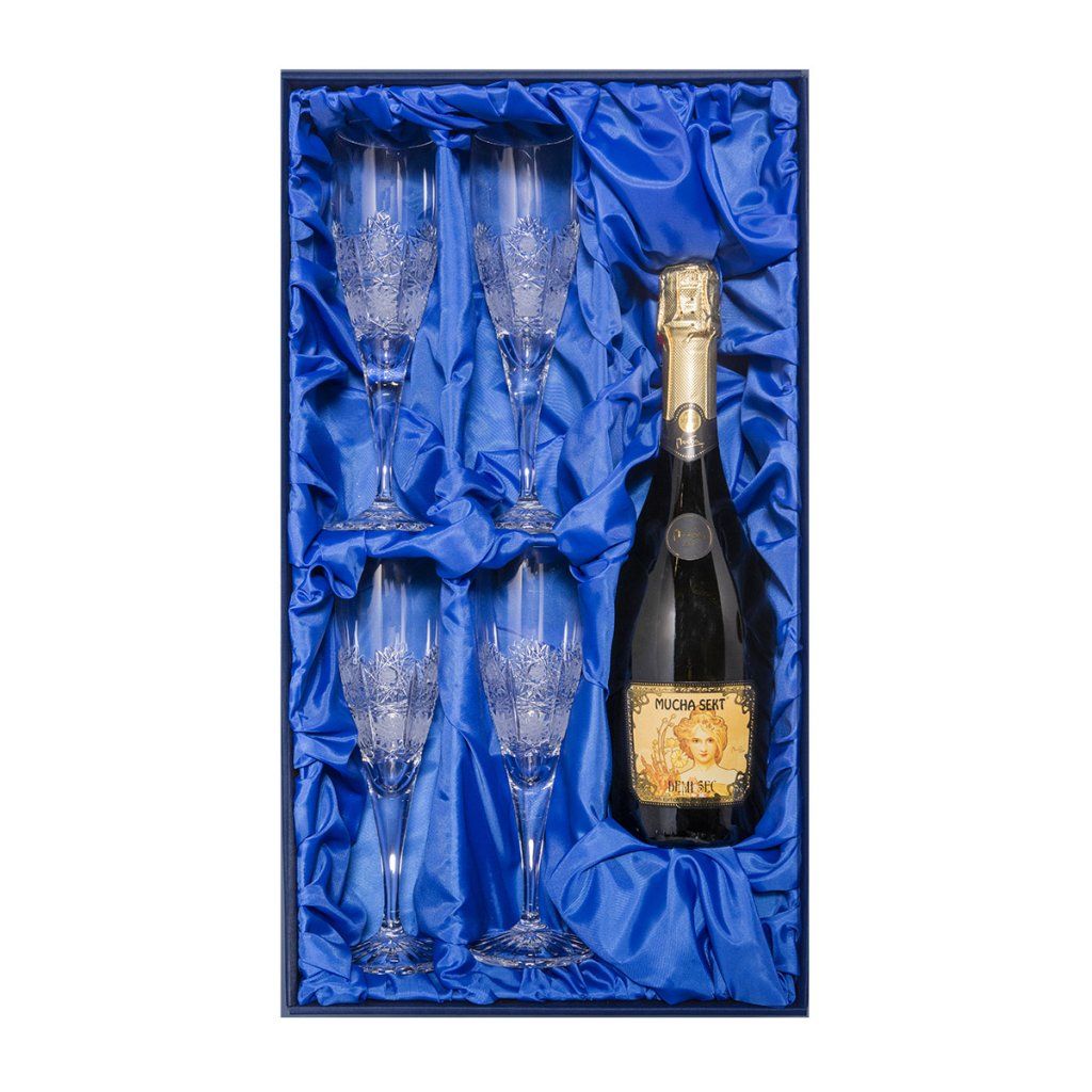 Dárková kazeta- broušené sklenice na šampaňské a Mucha sekt - brus Klasik